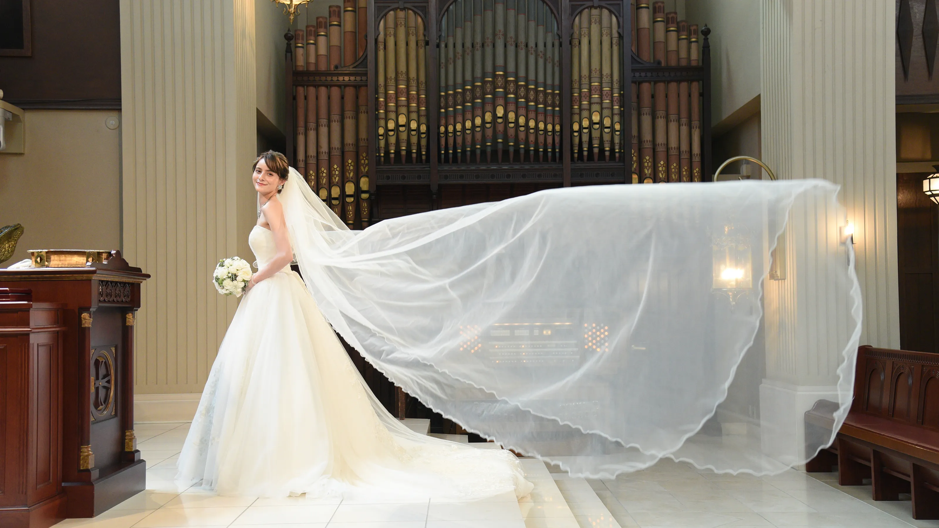 おふたりの誓いを見守るのは、バージンロードの先にある壮大なステンドグラス。多くの花嫁・花婿たちを見守ってきた歴史あるカテドラルが、人生最良の日をより美しく演出します。