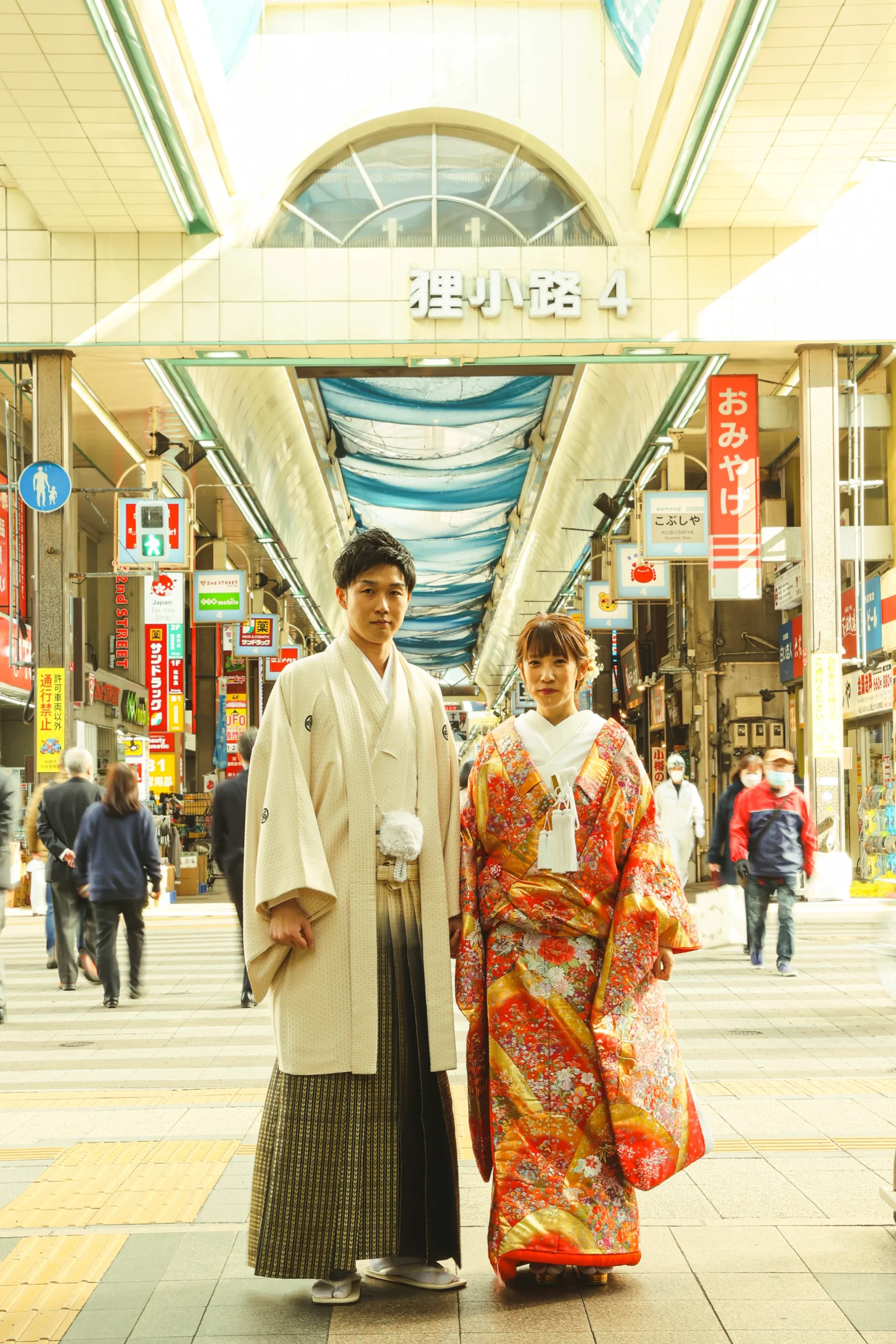 人々が行きかう札幌の中心、狸小路商店街で非日常を楽しむ。和装のおニ人が今日の主役、通りがかった人もおニ人を祝福します。思い出のスポットやおニ人で過ごした空間で、特別な一日を。