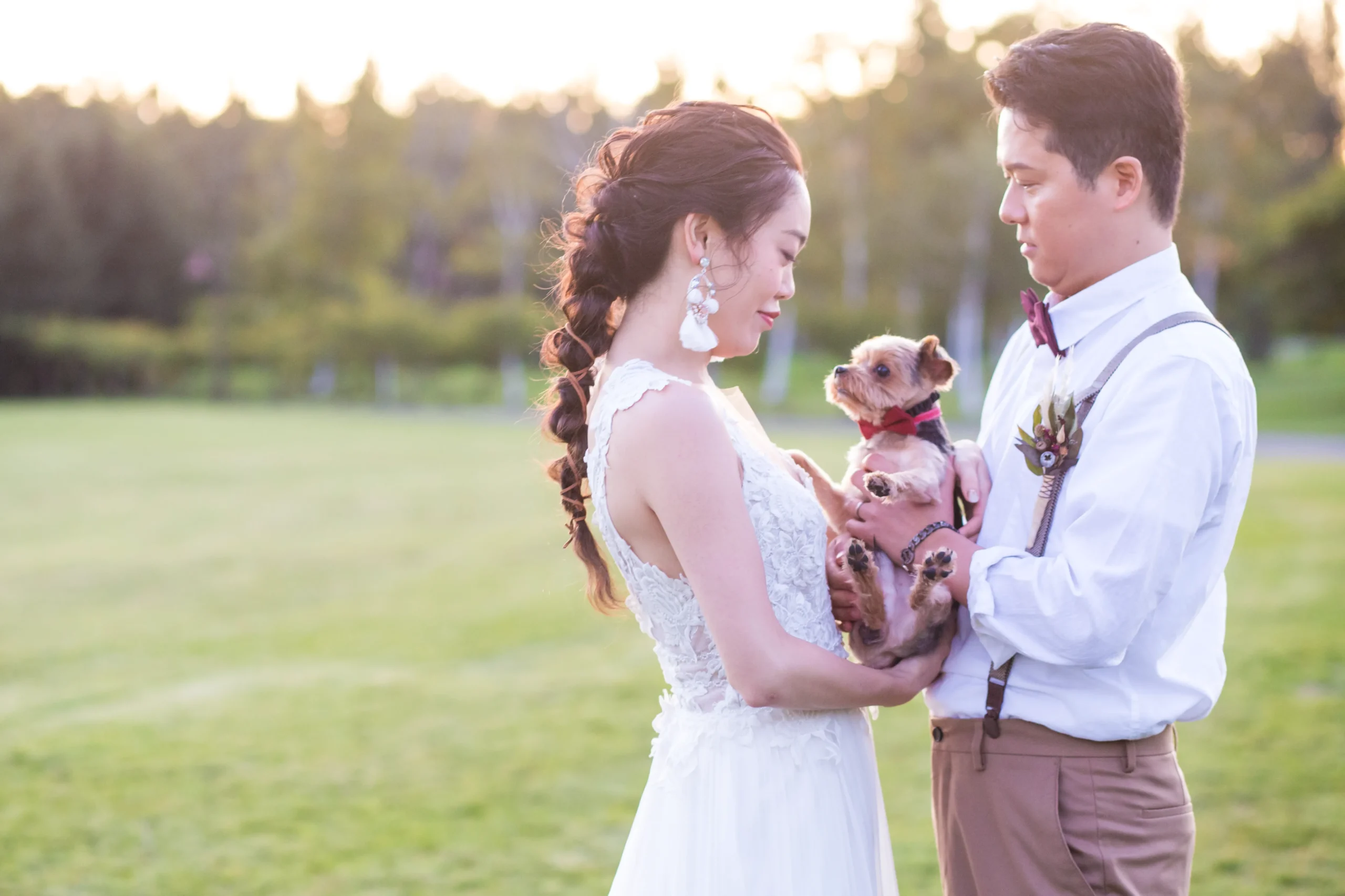 前田森林公園は、ペットを連れた人も多く訪れるお散歩にも人気のスポット。大切なご家族の一員として、ペットと一緒に撮影をお考えのおニ人におすすめです。広場や並木などペットと一緒に緑いっぱいの公園で特別なお写真を残せます。