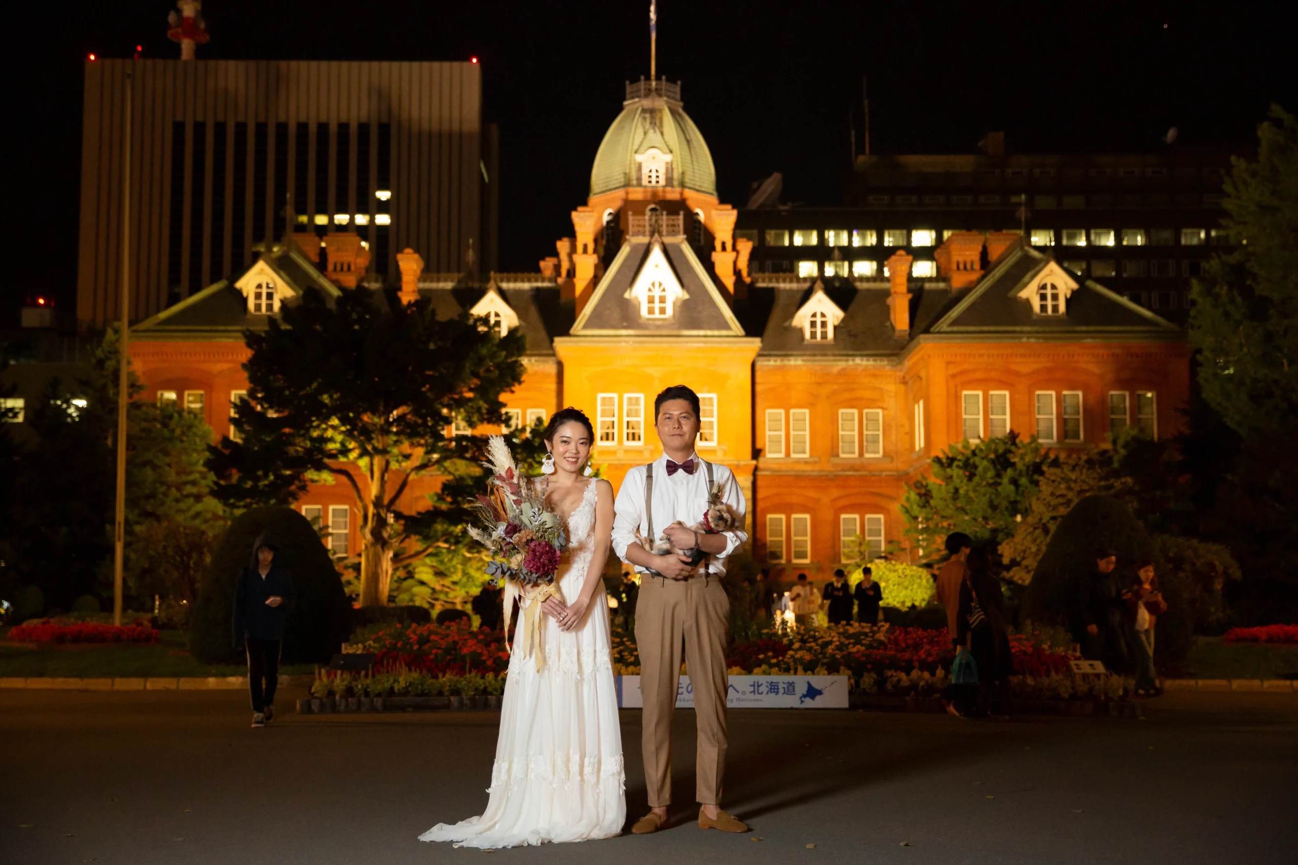 かつて北海道庁が置かれていた、赤レンガ造りの歴史的建造物をバックに。北海道らしいお写真を残したいおニ人や、レトロモダン・アンティークな雰囲気を楽しみたいおふたりにおすすめ。