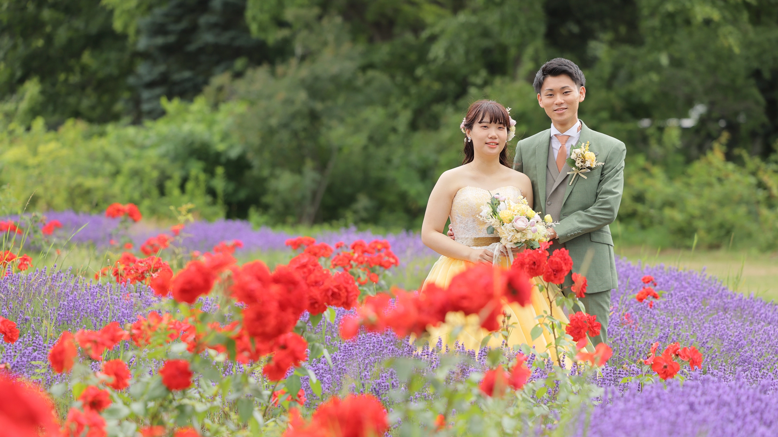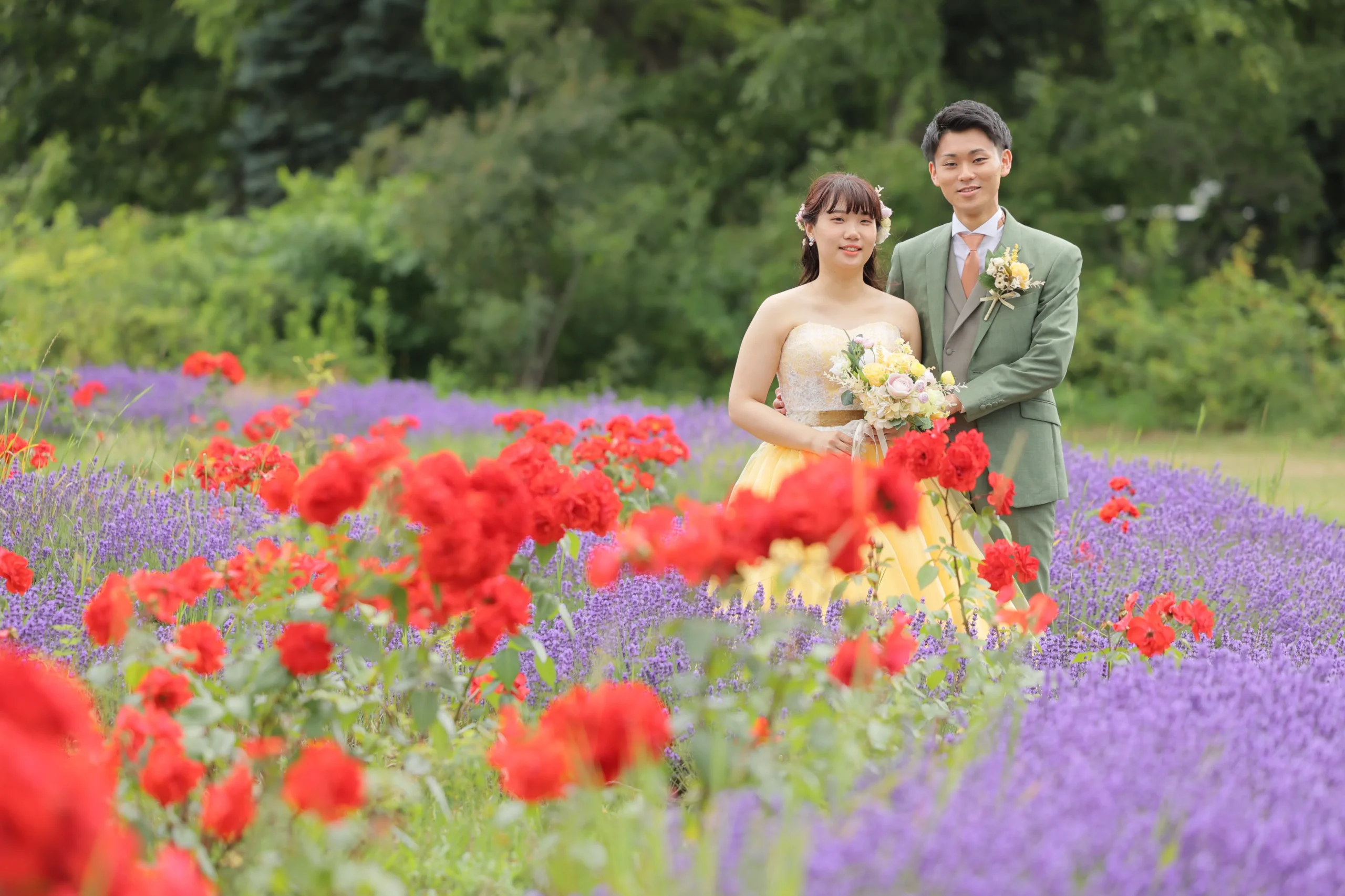 札幌市北区の百合が原公園は、季節で様々な種類の花が楽しめる地元の人々に愛される公園です。名前の通り、ユリをシンボルとしており世界中から100種類以上の品種が集められています。ユリ以外にもライラックやチューリップなど多くの花が植えられていて季節の花畑で撮影をしたい!というおふたりにオススメのスポットです。