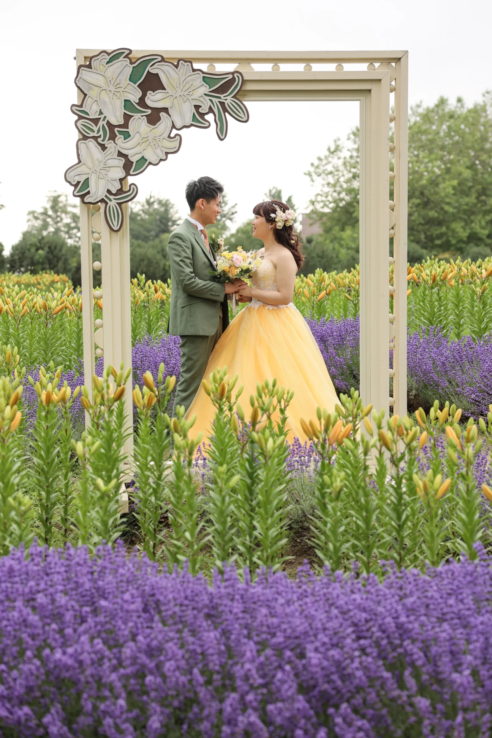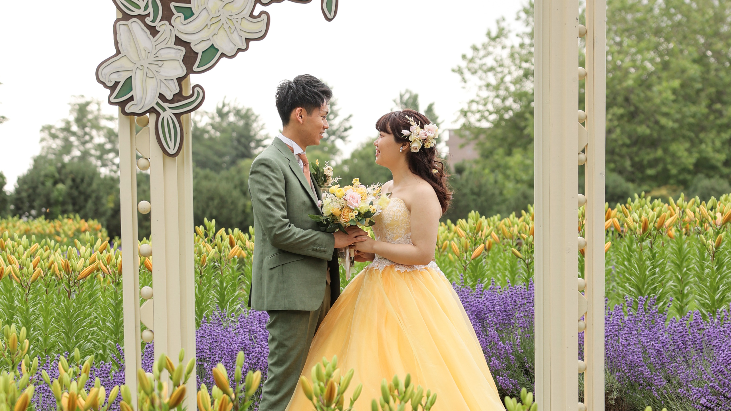 百合が原公園に設置された、ユリのモチーフが付いたフォトフレームのようなフォトスポット。訪れた時期によって周辺のお花が変化するので、おニ人だけの特別なお写真が撮影できます。