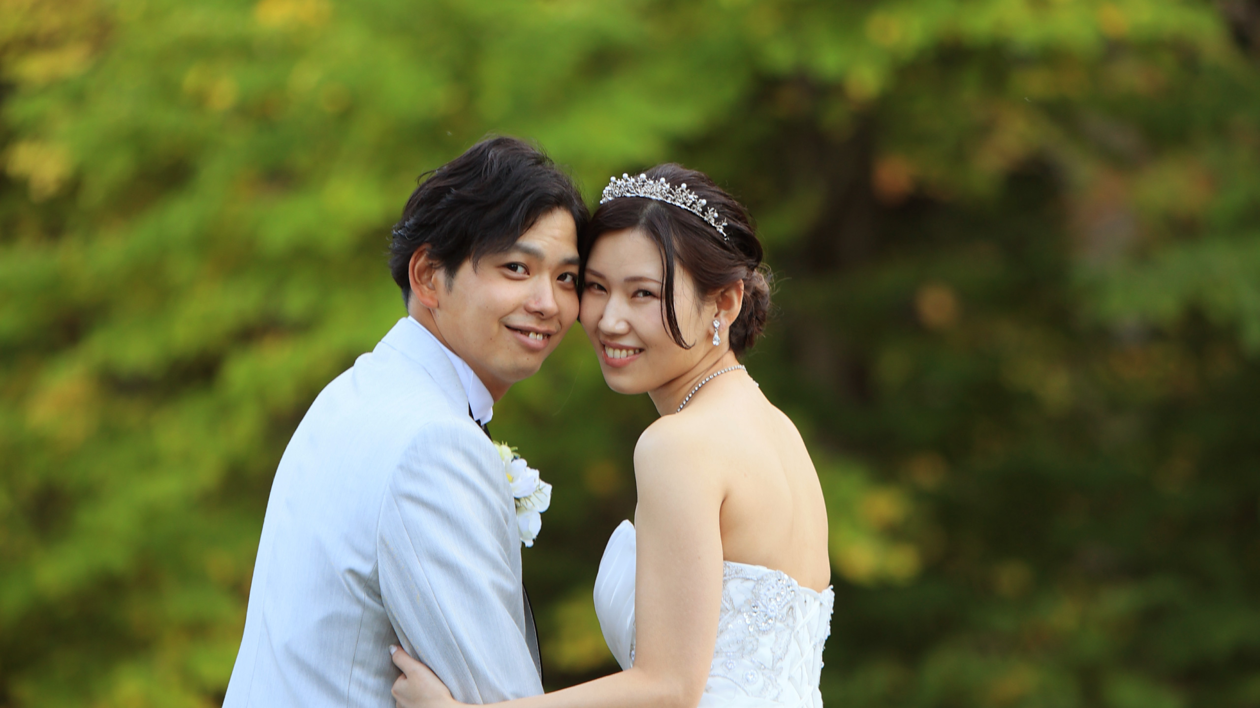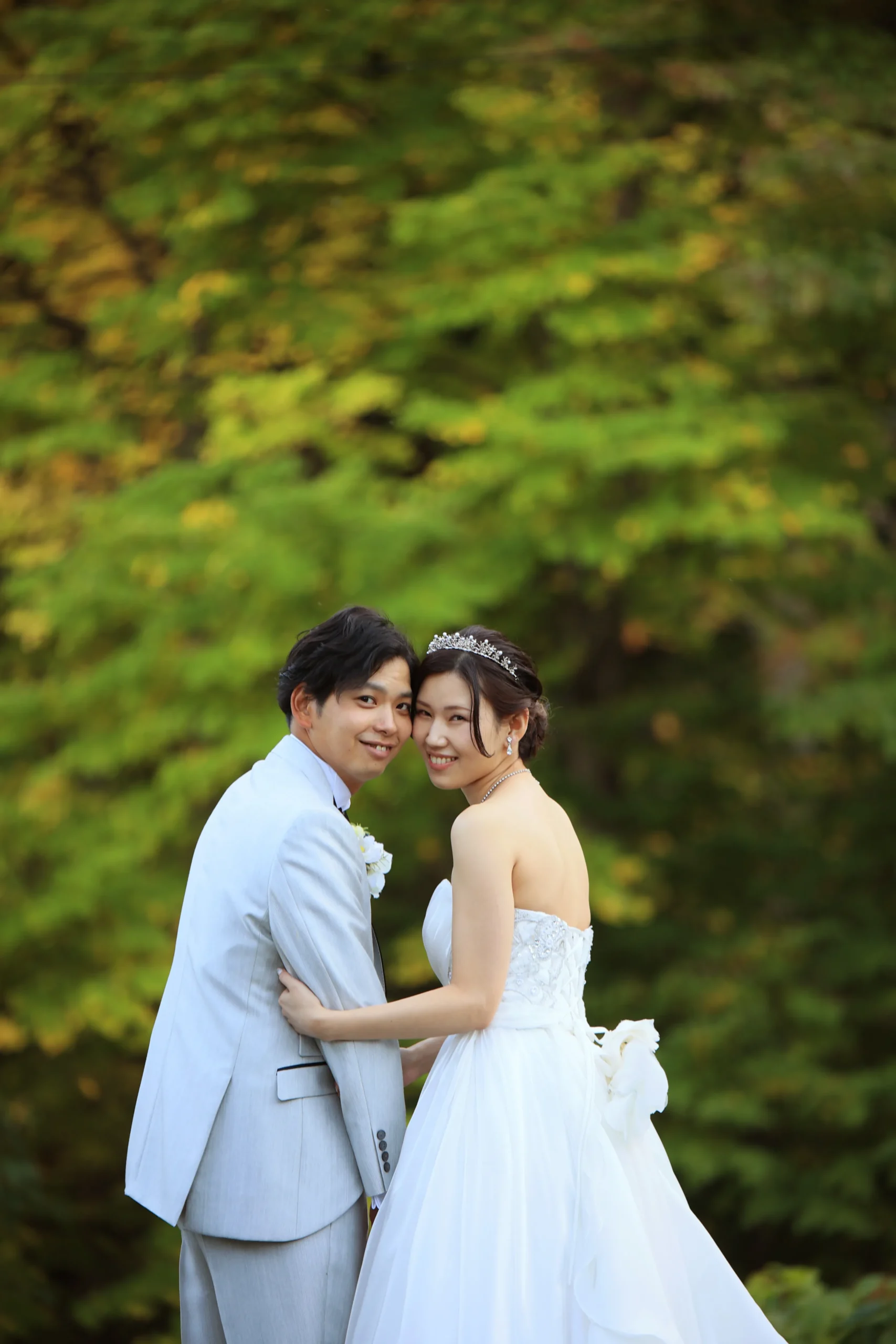 森が近い藻岩シャローム教会だからこそ。施設周辺で気軽に緑いっぱいのウエディングフォトが撮影できます。非日常を感じられる特別なお衣裳を着て、リラックスしたおふたりのナチュラルな表情が残せます。