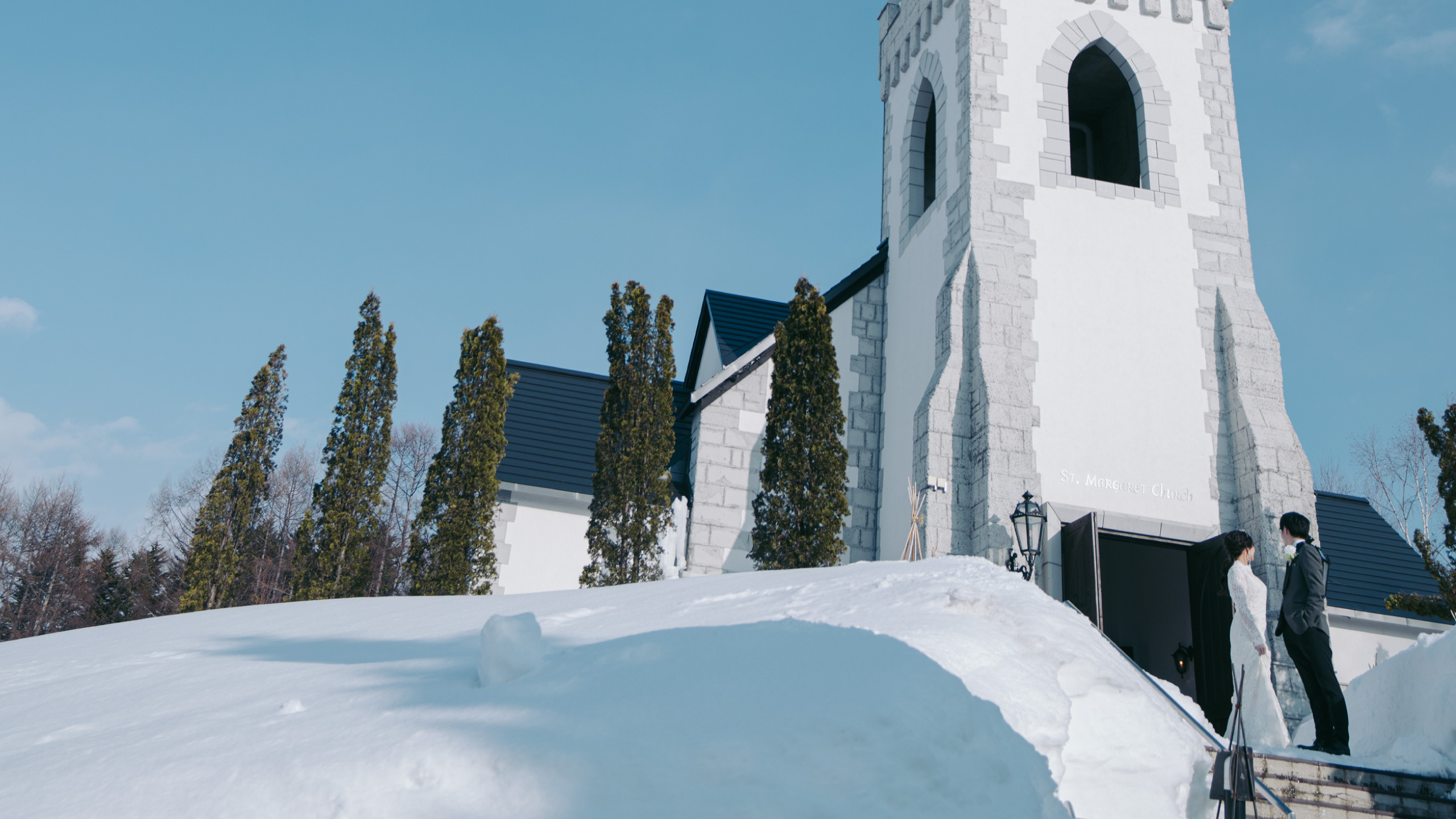 イルムの丘の広大な敷地に建つ、セント・マーガレット教会では広大なガーデンで四季折々のフォトウエディングが行えます。緑の美しいシーズンはもちろん、紅葉や雪の積もるガーデンスペースを貸切りにして自由な写真撮影が叶います。