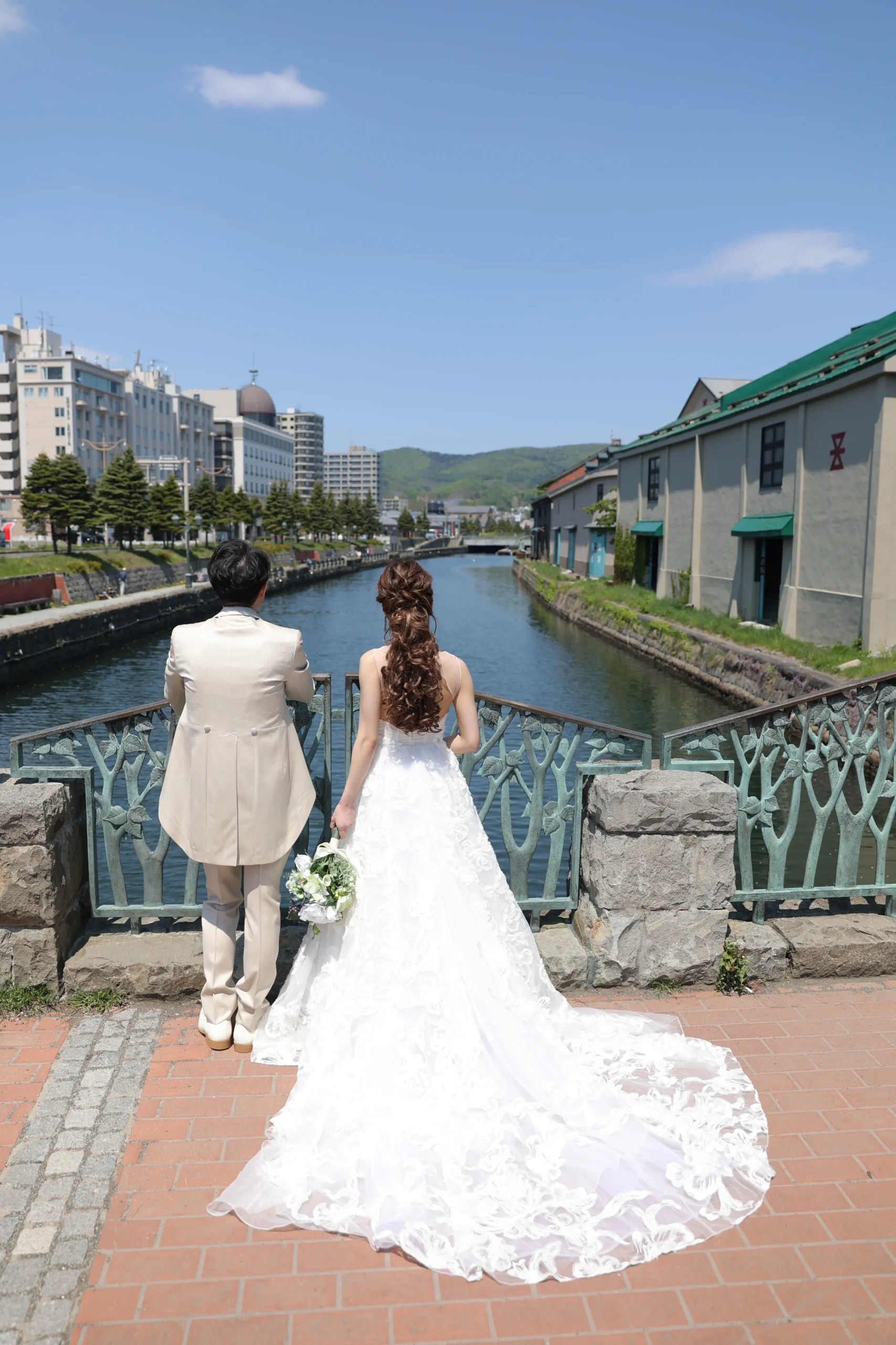 晴れた日の小樽運河は、きれいな街並みと運河、空のコントラストが鮮やか。レトロな街並みとキラキラと光を反射する運河に囲まれて、おしゃれな雰囲気の中でのロケーションフォトを楽しんで。