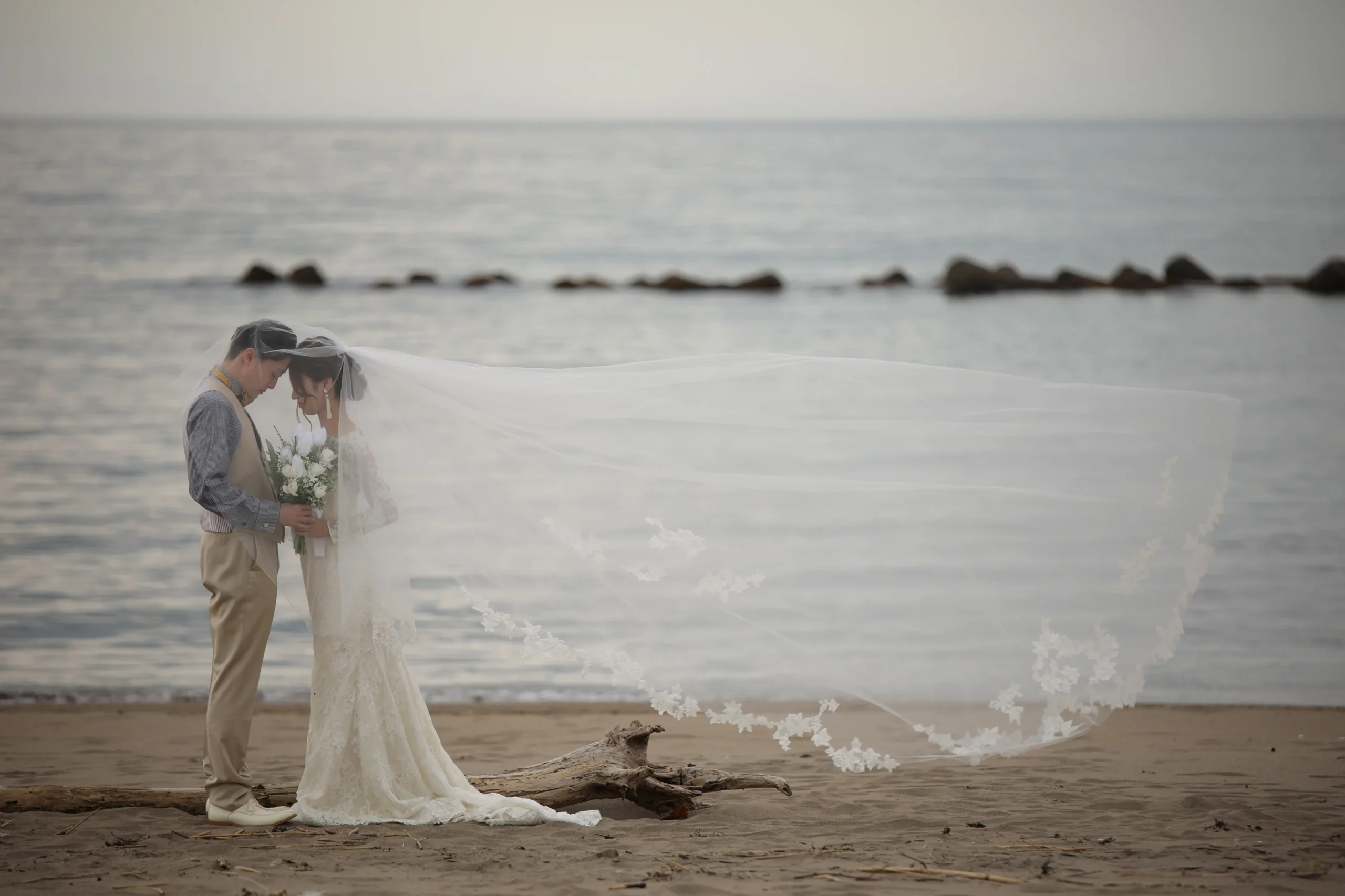 小樽海岸の砂浜を使ったフォトもおすすめ。観光もフォトも楽しみたいおふたりは、小樽ならどちらも楽しめる!グルメやお買物スポットもたくさん!
