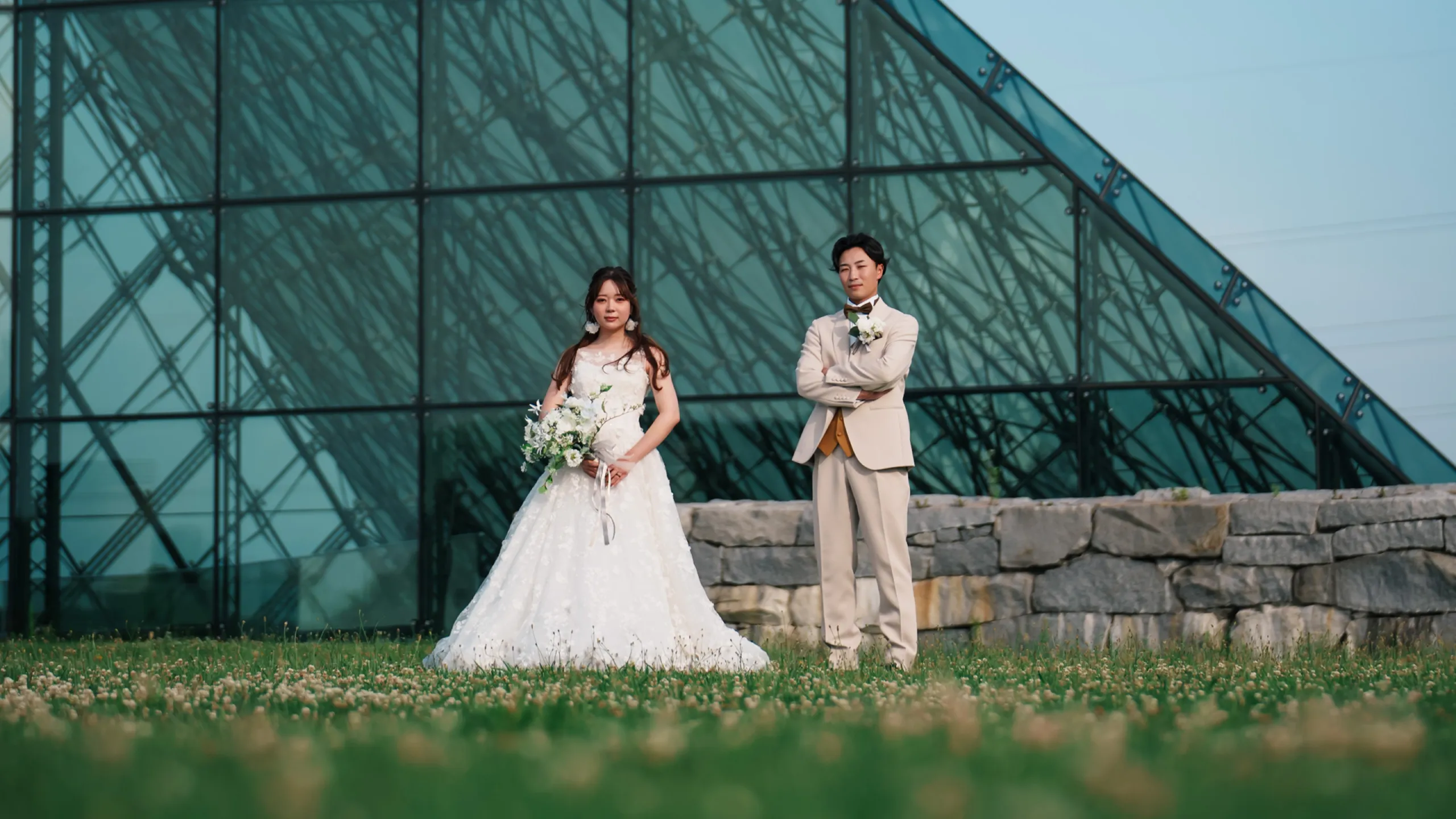 建築家イサム・ノグチによる設計のガラスのピラミッドは、モエレ沼公園のシンボル的な建物です。見る角度によって様々な景色が映り込むこのピラミッドは、どの角度からも美しいお写真が撮影できます。室内の階段を使って、奥行きのあるお写真やドレスの美しさを活かした撮影ができる点も魅力です。