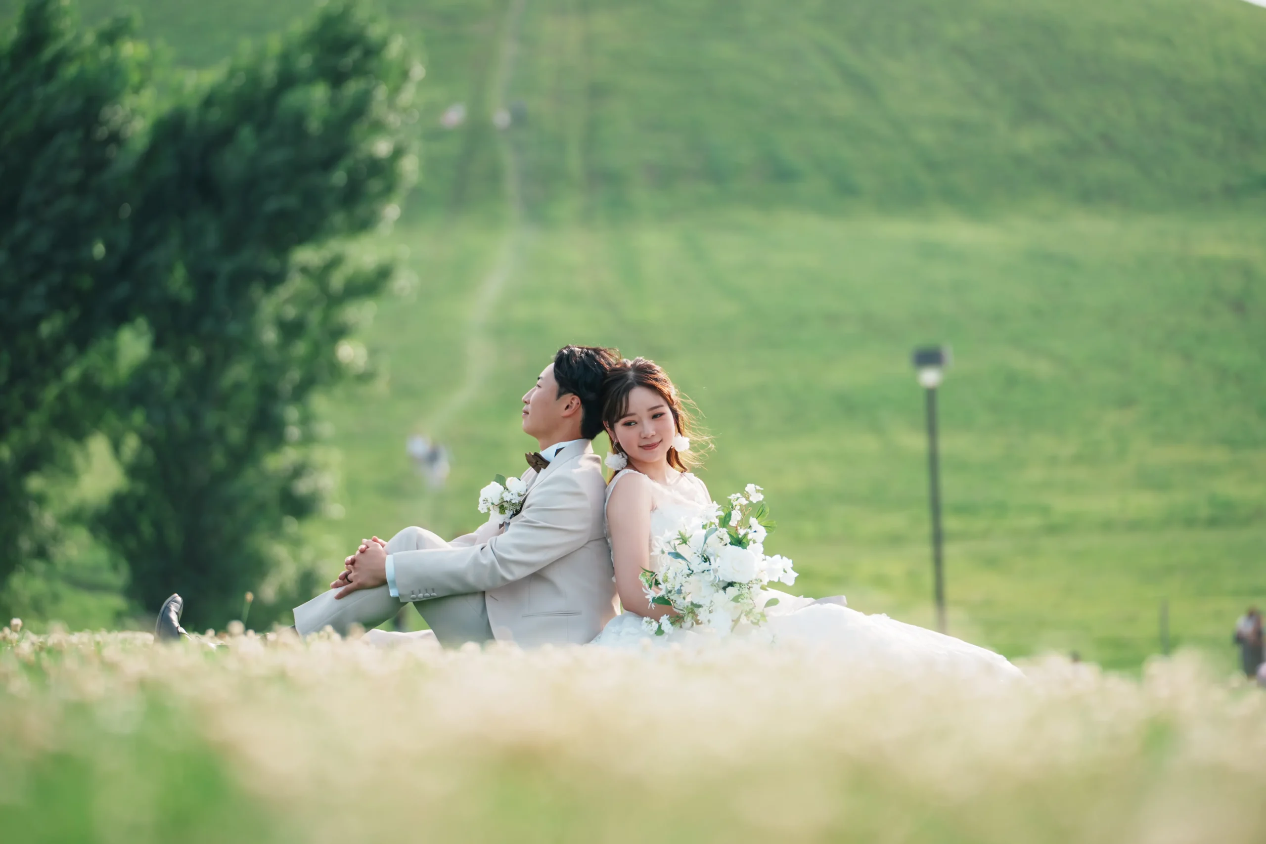 新緑が美しいモエレ沼公園での1枚。緑がいっぱいのモエレ沼公園は、素敵な景色がたくさん。衣裳や小物などを活かして、おニ人らしいアレンジを楽しんで。