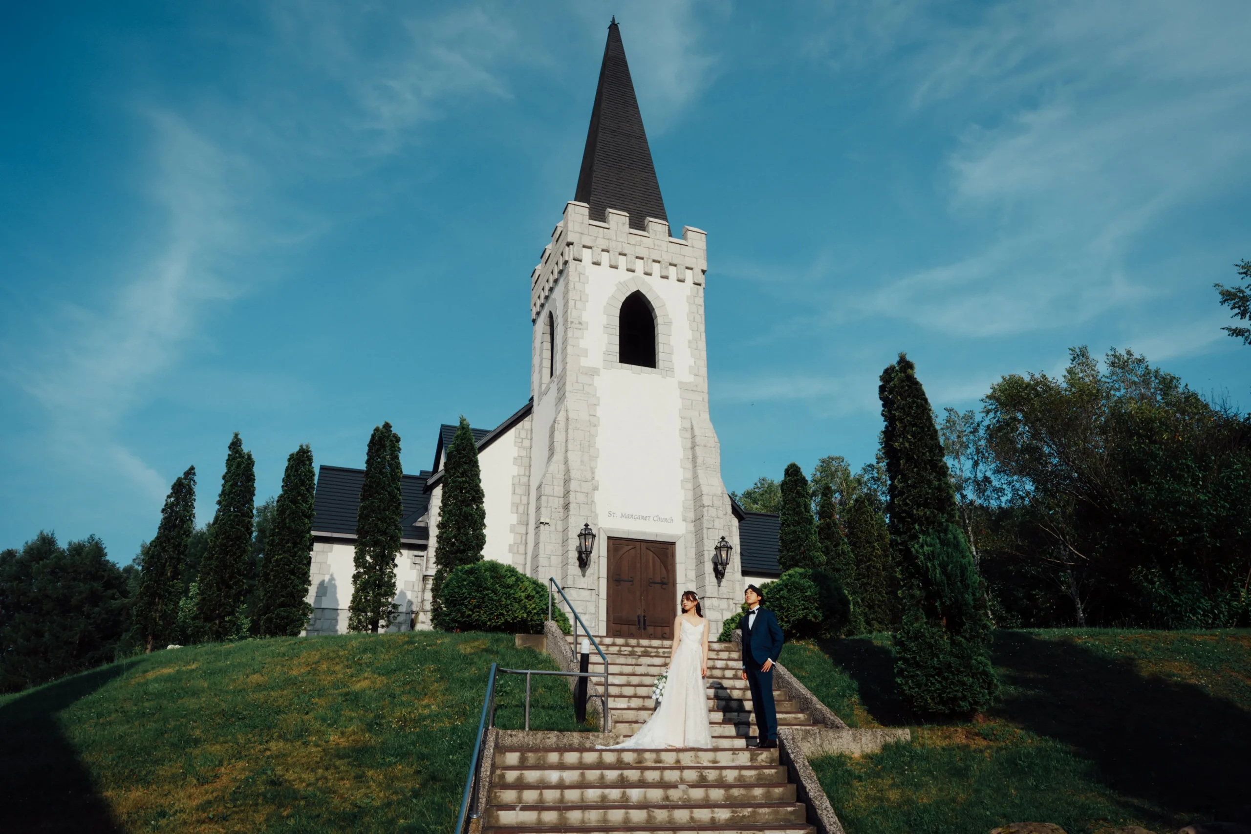 イルムの丘のセント・マーガレット教会には、絵本の世界のようなかわいらしいチャペルと、ヨーロッパ建築の技法を使って建てられたレストラン。絵本の扉を開いたような、物語のあるお写真を残したいおふたりにオススメ。