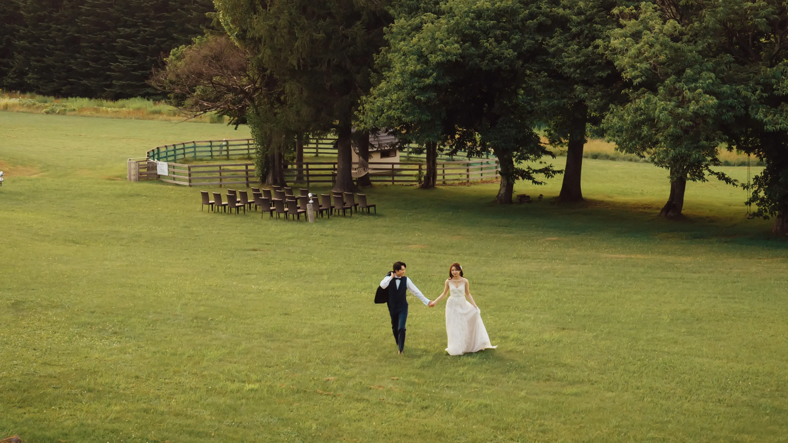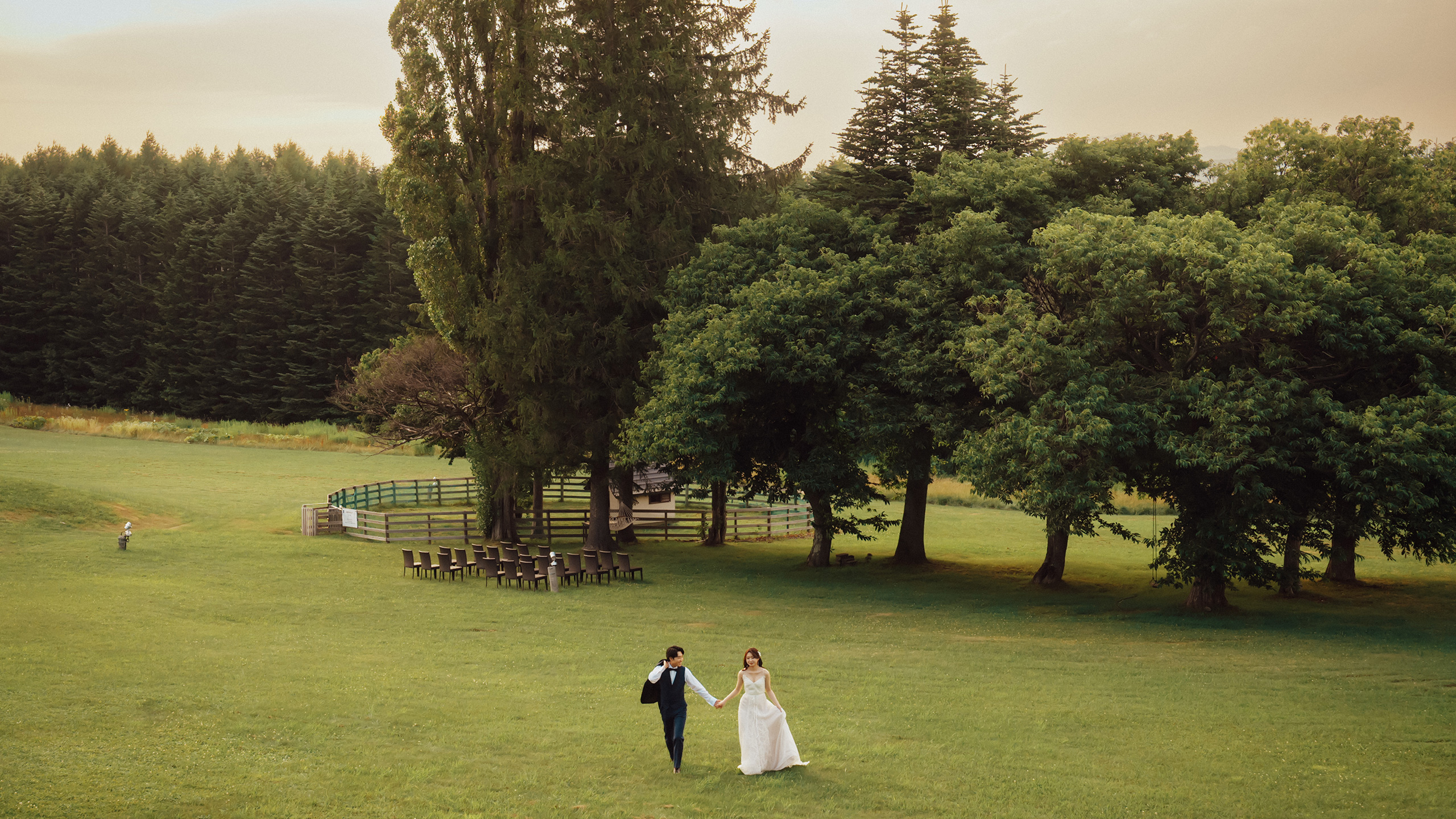 イルムの丘のガーデンには、広い芝生とシンボルツリー、ハンモックなどのスポットが。のどかな雰囲気に囲まれて、リラックスをしたおニ人の姿を残せます。