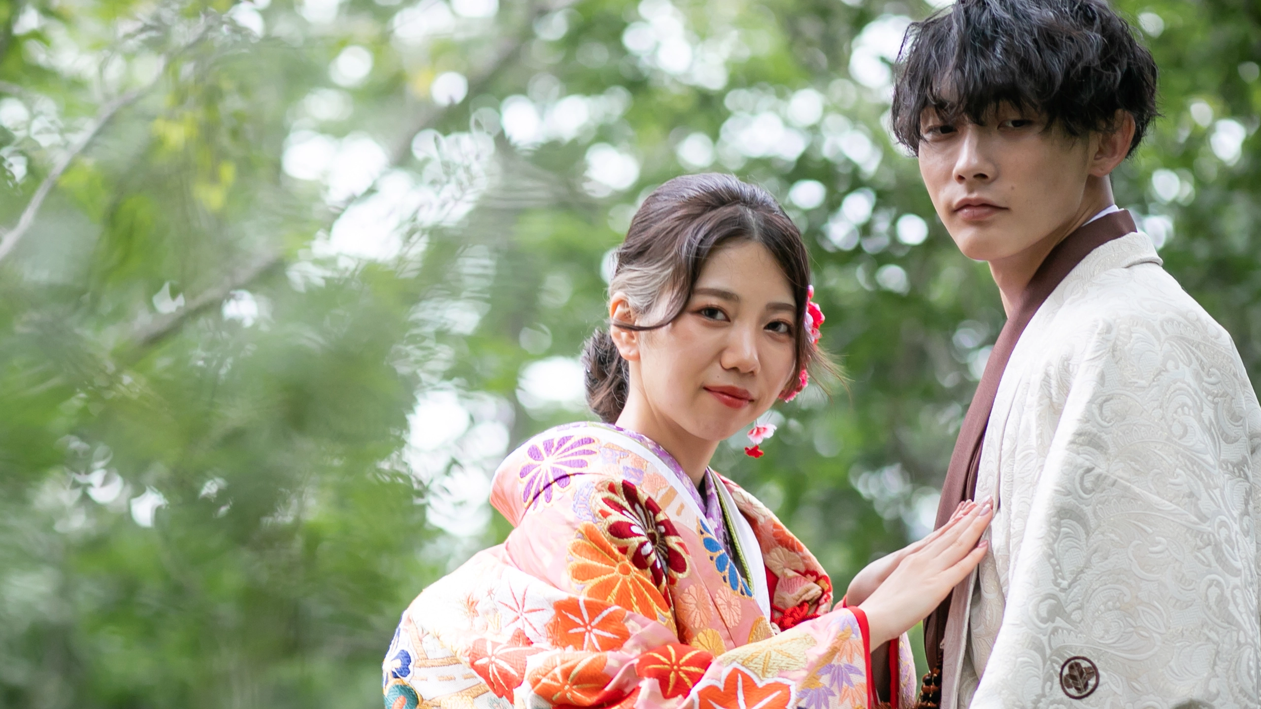青々とした芝生や淡いピンクの桜、キラキラと輝く木陰でのワンショットなど