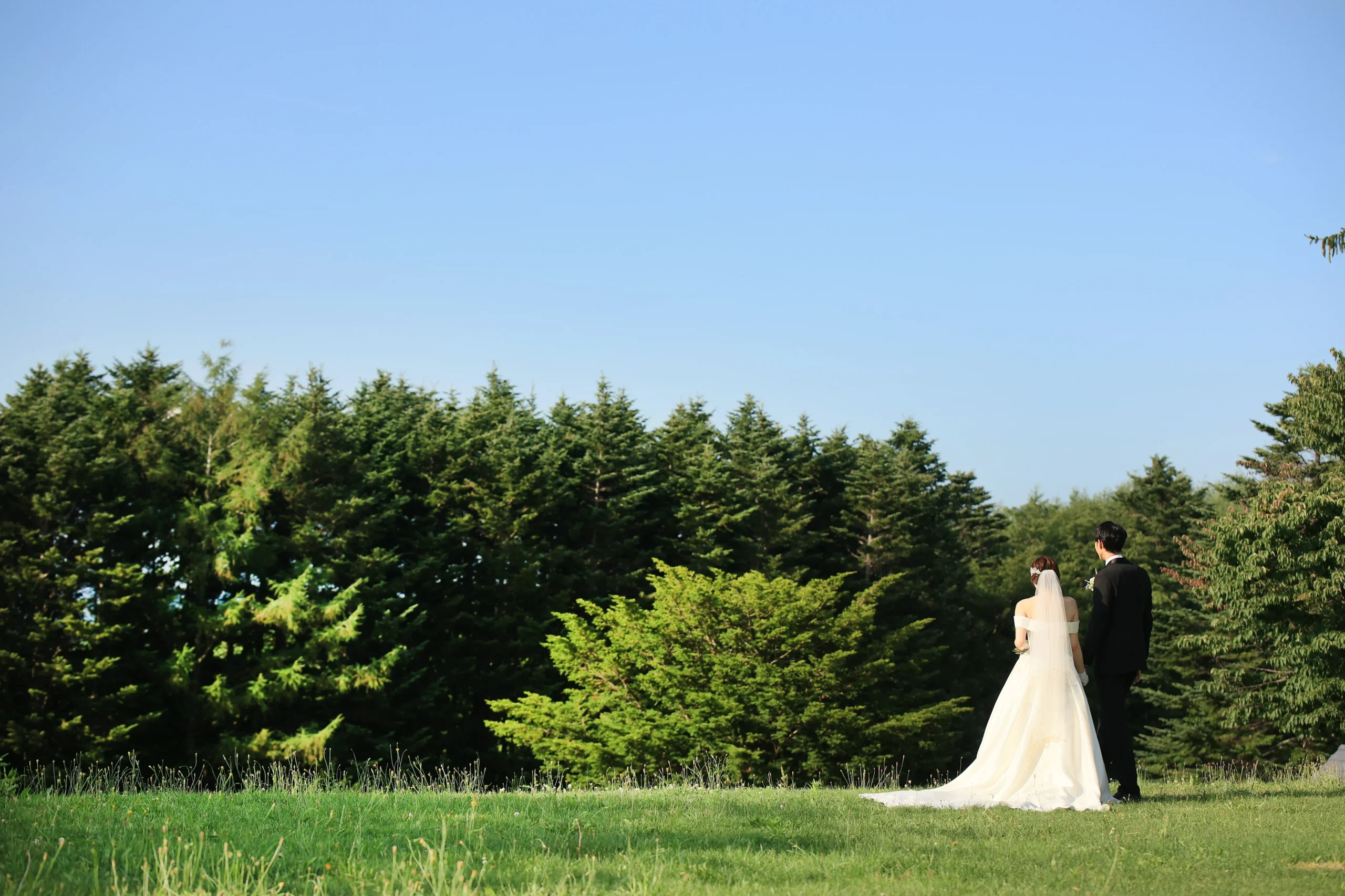 イルムの丘のガーデンには、広い芝生とシンボルツリー、ハンモックなどのスポットが。のどかな雰囲気に囲まれて、リラックスをしたおニ人の姿を残せます。