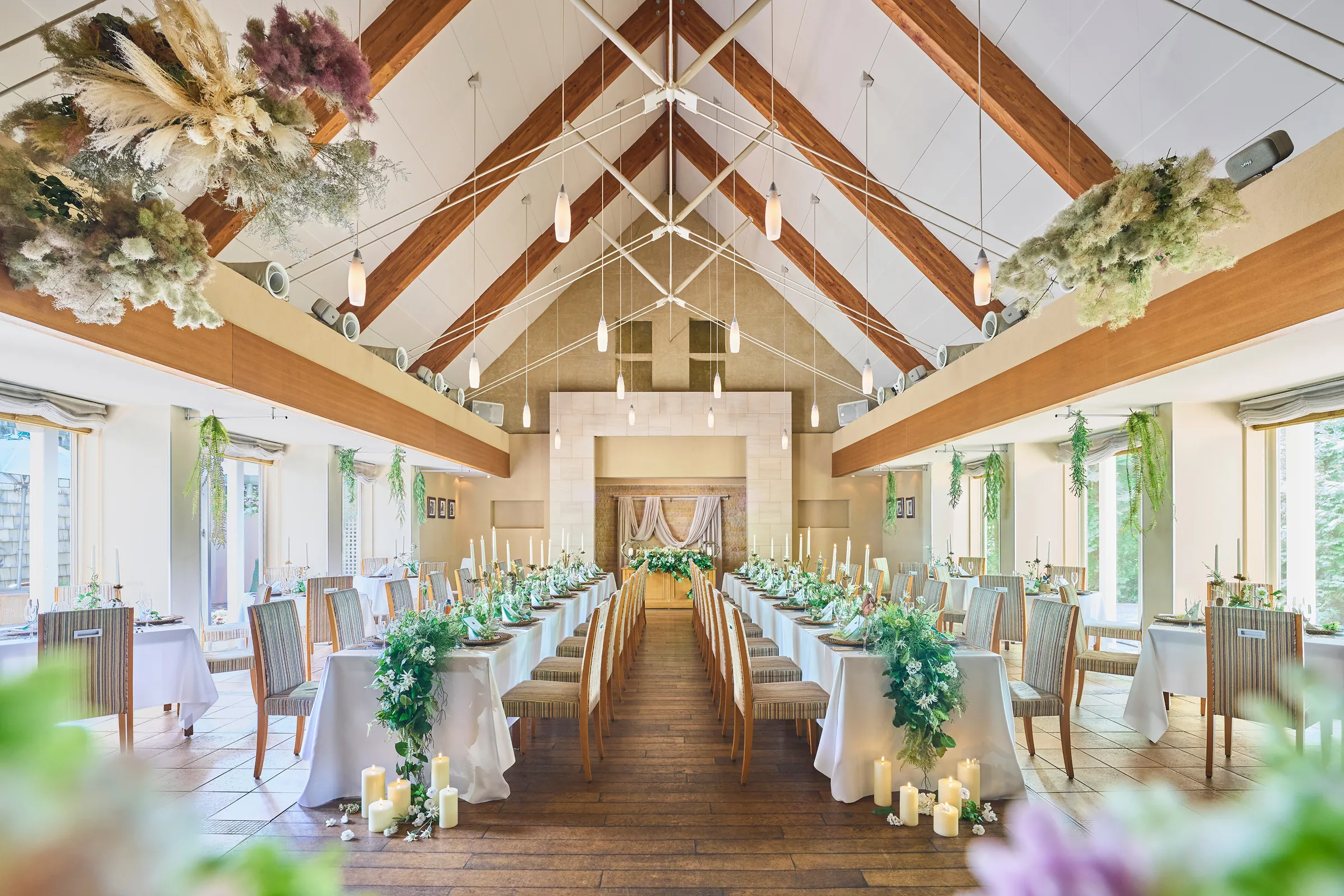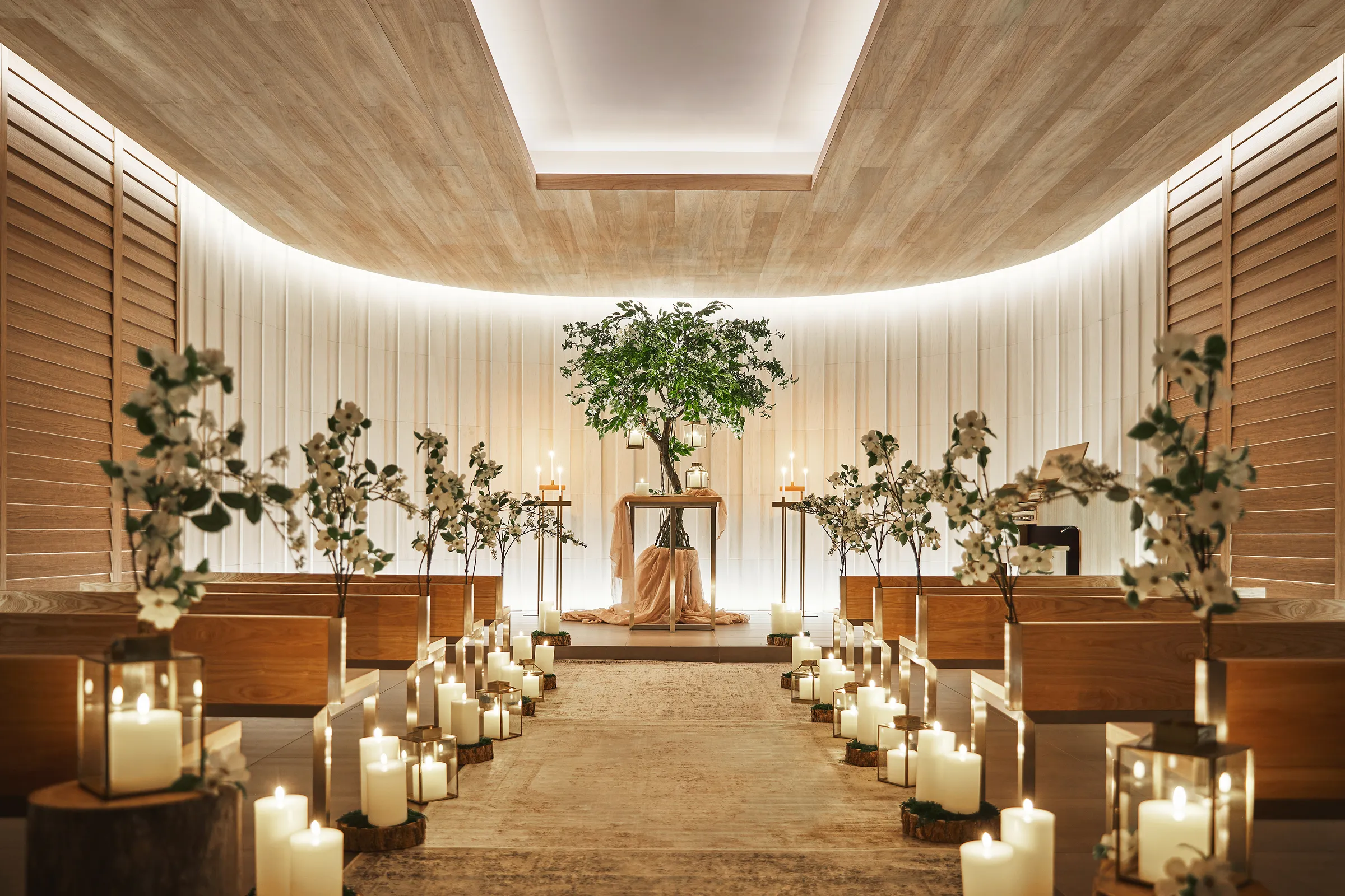 シンプルモダンな空間は、和装にも洋装にも美しく映え、おふたりの感性を自由に表現できる舞台となります。