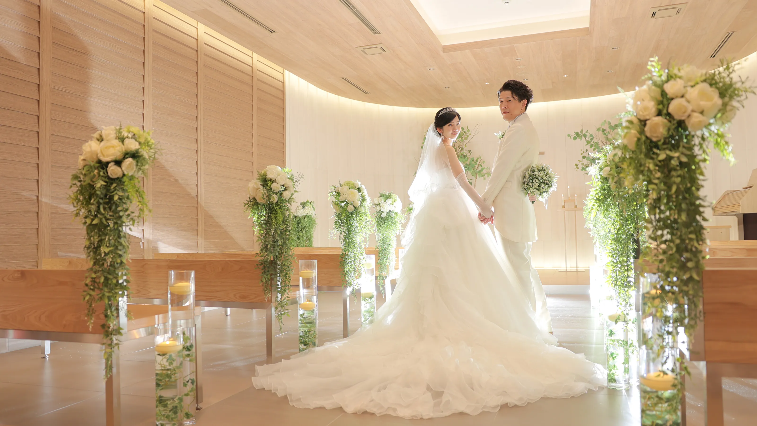 四季の折々の表情を大切にした、リンスクエアオリジナルのコーディネート挙式をはじめ、人前式、キリスト教式、神前式まで、さまざまな挙式スタイルからおふたりらしいセレモニーのスタイルを選べます。