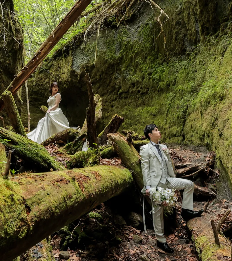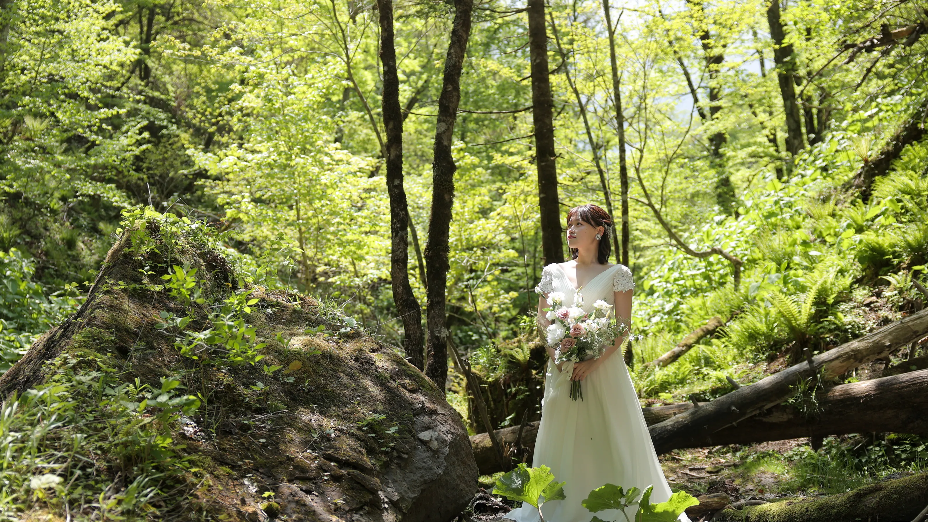 青々とした芝生や淡いピンクの桜、キラキラと輝く木陰でのワンショットなど
